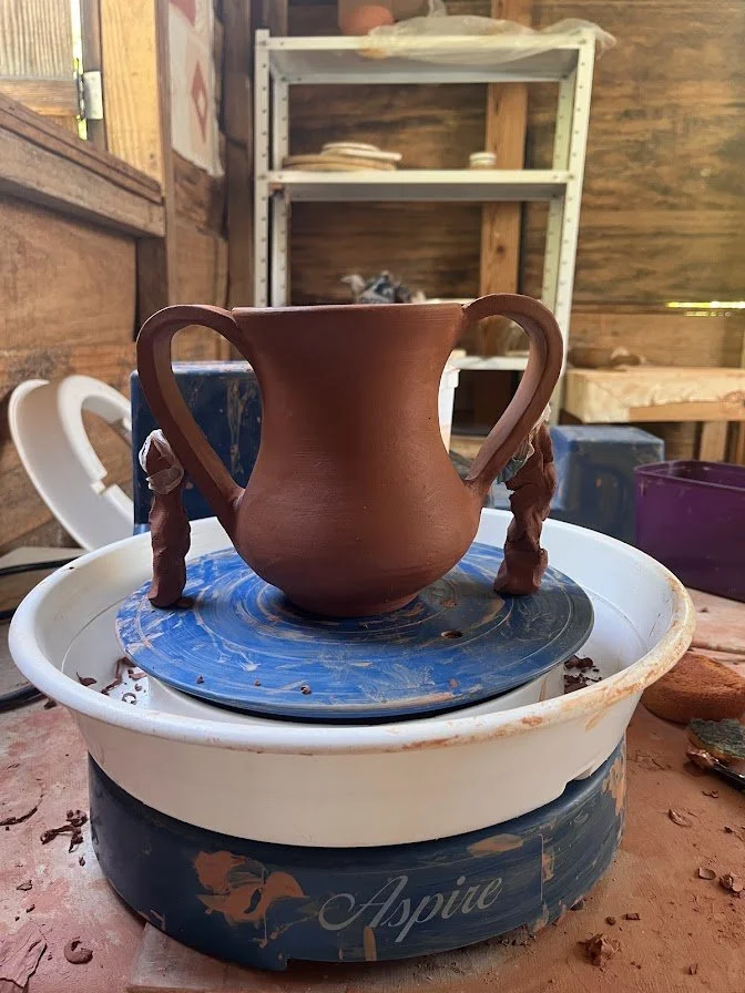 Ah! E eu faço cerâmicas! Aqui embaixo tem a foto de um vaso que eu fiz :)